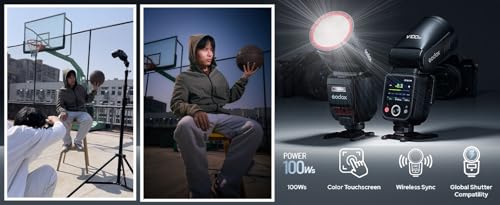 ضوء فلاش V100 N TTL لكاميرات نيكون، مع تحكم باللمس وقدرة 100 وات، فلاش كاميرا مطور يوفر 70 وميض متتالي بالطاقة الكاملة من جودوكس