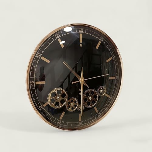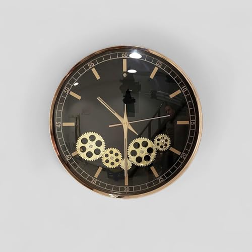 ساعة حائط صامتة مع تروس متحركة حقيقية تعمل بالبطارية لديكور غرفة المعيشة والمطبخ وغرفة النوم والمكتب 23384B اسود