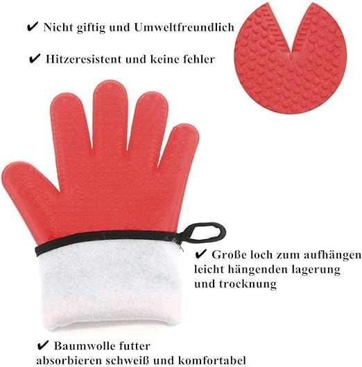 - مادة عالية الجودة --- مصنوعة من السيليكون، تحمي الأصابع واليدين والمعصمين بشكل أفضل من الحروق أثناء الطهي والخبز.