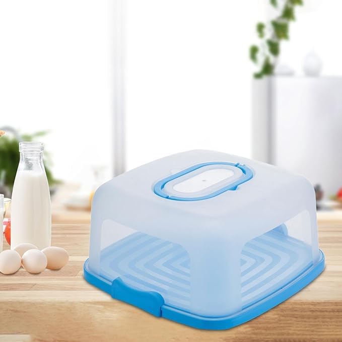 حامل كيك مع غطاء ومقبض بشكل مربع، علبة نقل كيك للكب كيك، آمنة غذائيًا ومانعة للتسرب، خالية من مادة البيسفينول أ، حاوية تخزين، أزرق