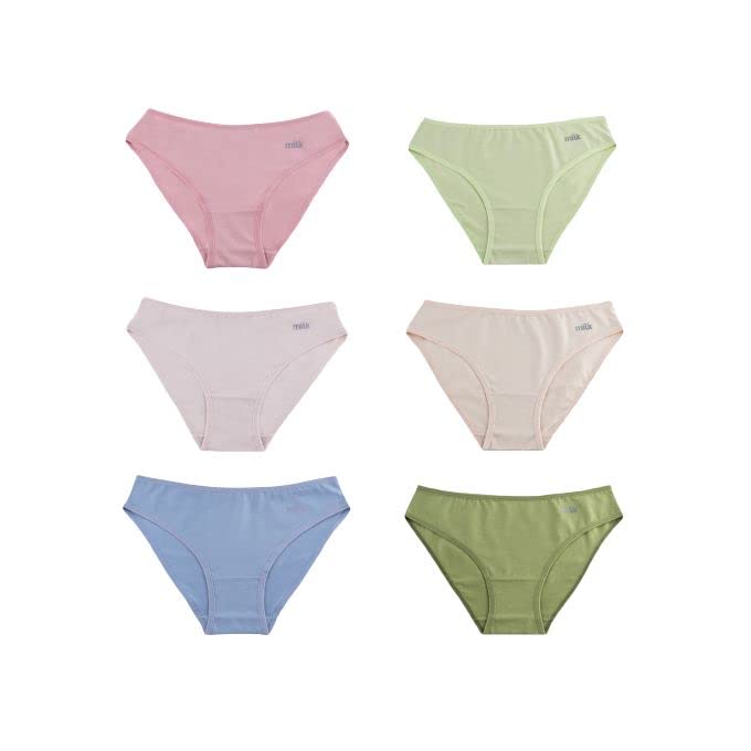 طقم ملابس داخلية بيكيني وبيكيني سادة من القطن للنساء ميلك 6 قطع متعدد الألوان XXL