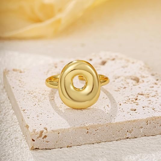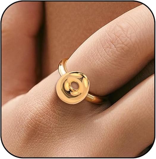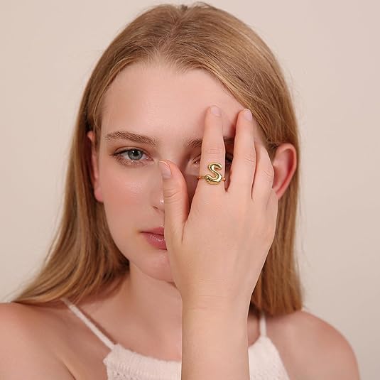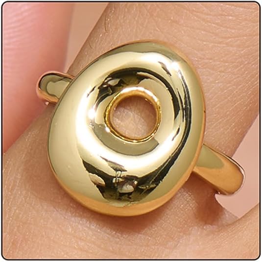 خاتم بابل بتصميم الحرف الاول من الاسم للنساء، بتصميم بالون انيق ستانلس ستيل مطلي بالذهب عيار 18 قيراط بتصميم الحروف الابجدية المفتوحة من A-Z قابل للتعديل، من فيروز جوليري