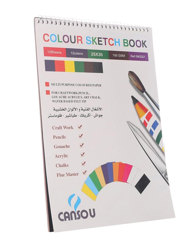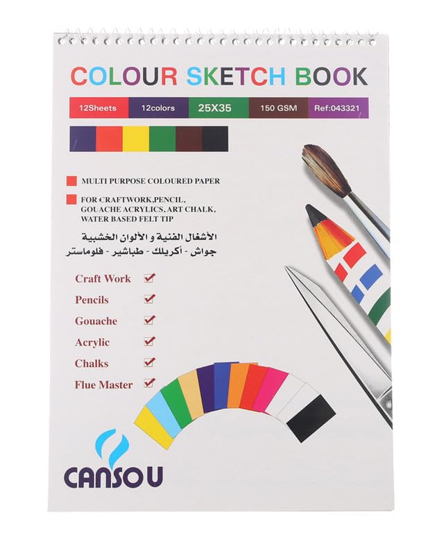 ورق رسم بسلك ملون من كانسو، 12 ورقة، مقاس B4 بوزن 150 جرام، متعدد الألوان، موديل C-19276-2