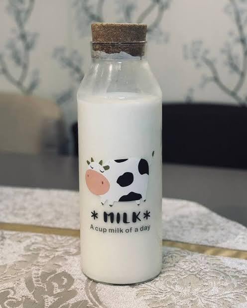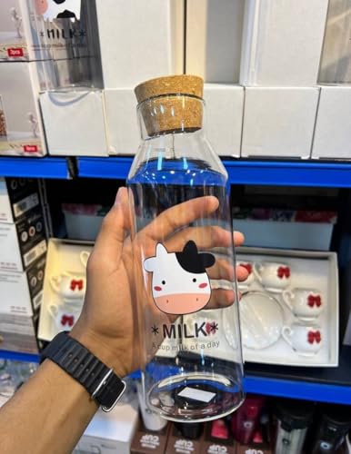 - مزايا التصميم: زجاجة زجاجية ساحرة تتميز بتصميم بقرة رائع ونص "ميلك"، مثالية لتخزين وتقديم المشروبات بأناقة
