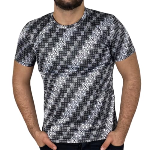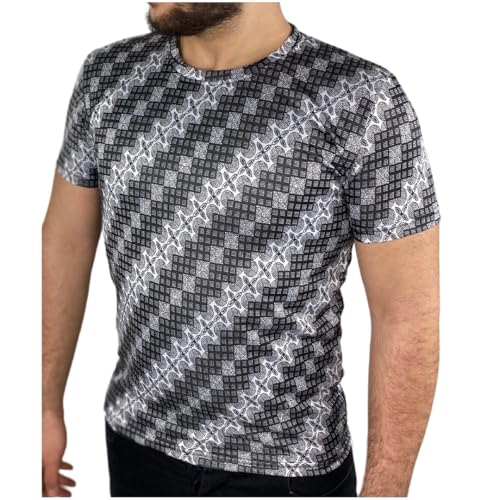 تيشرت جاكار بقصة كلاسيكية للرجال ورقبة دائرية وأكمام قصيرة، قطعة واحدة 95% بوليستر و5% سباندكس.