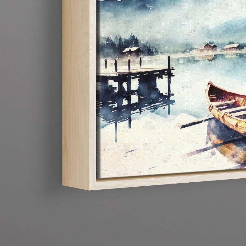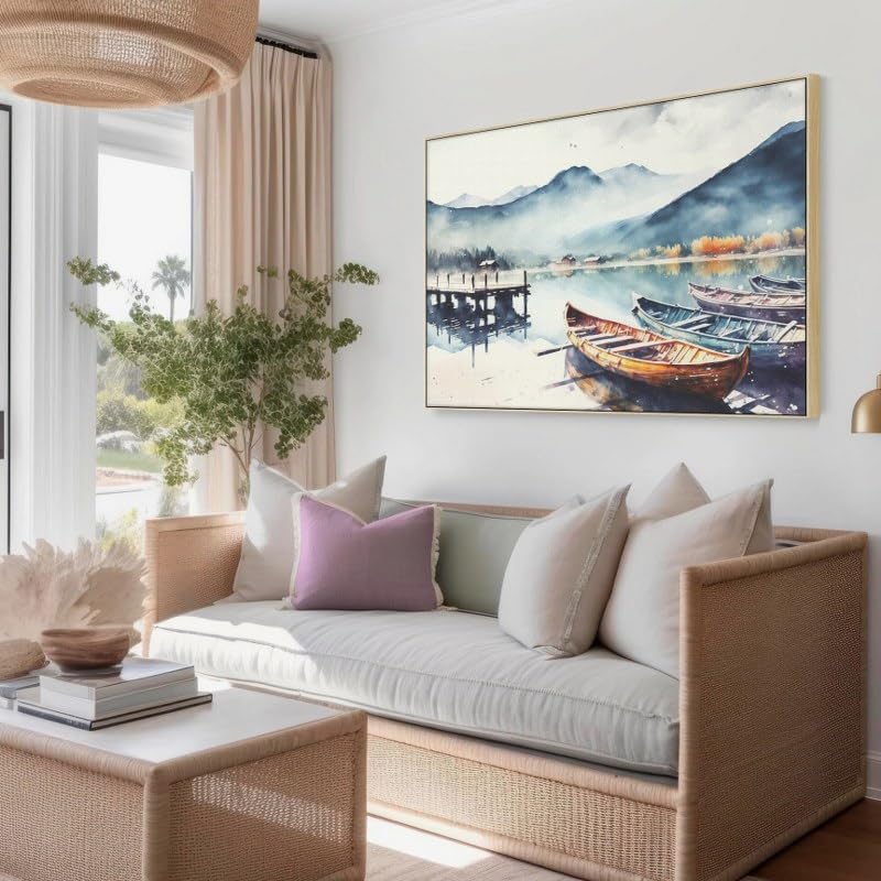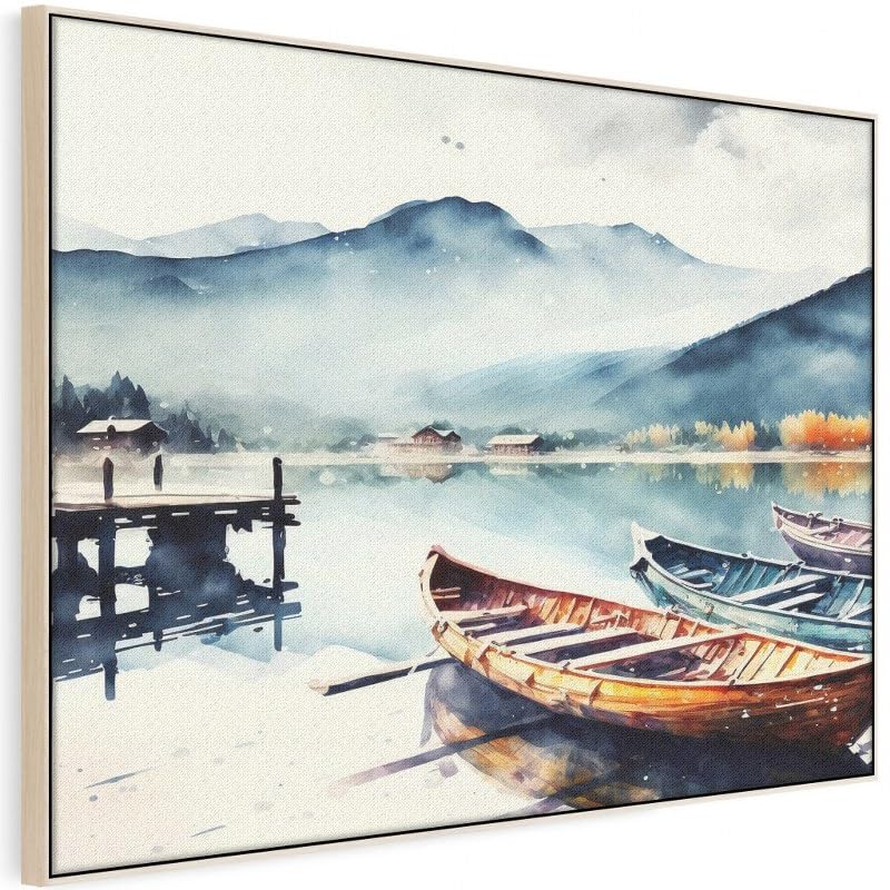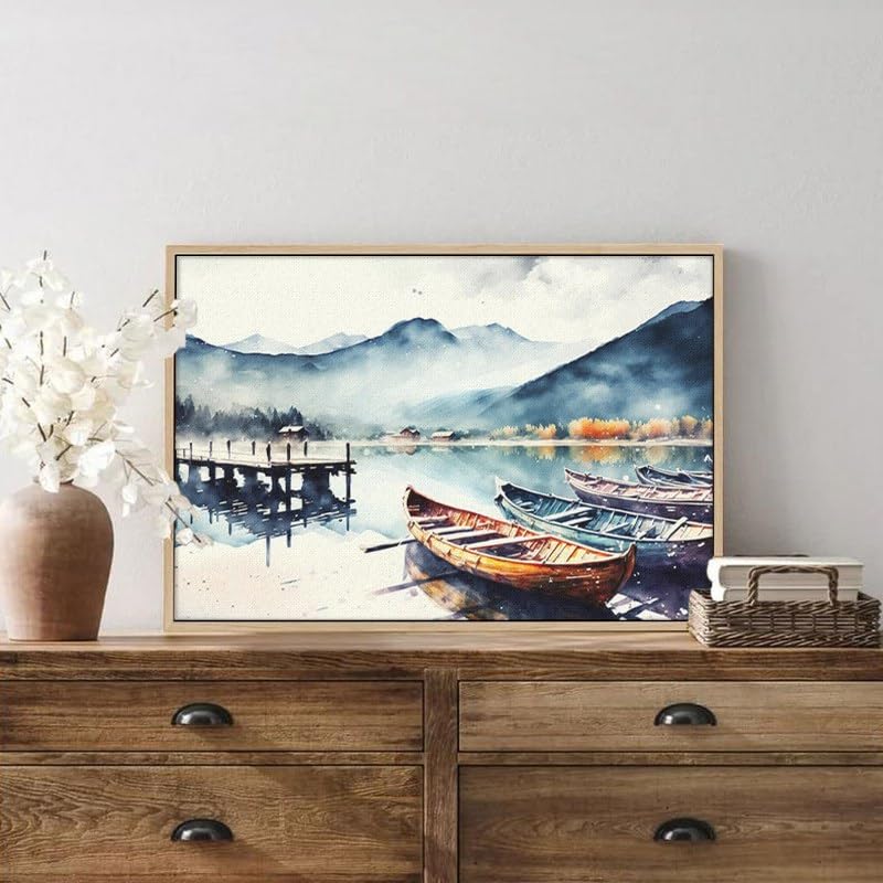 لوحة فنية جدارية قماشية مؤطرة بتصميم قوارب ذات منظر بانورامي، بأبعاد 60 × 40 سم