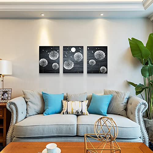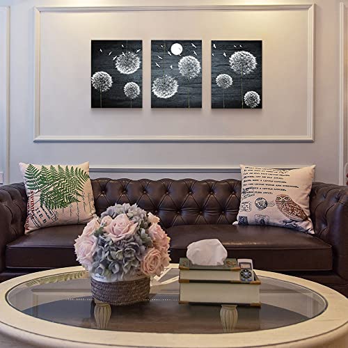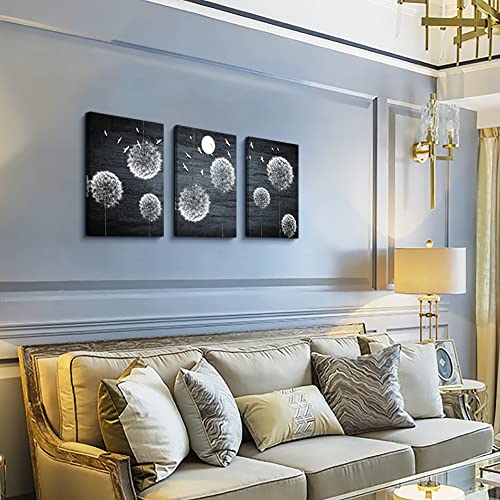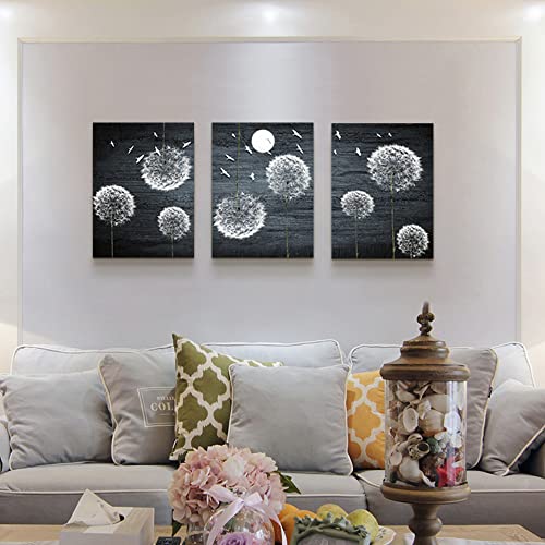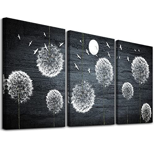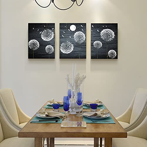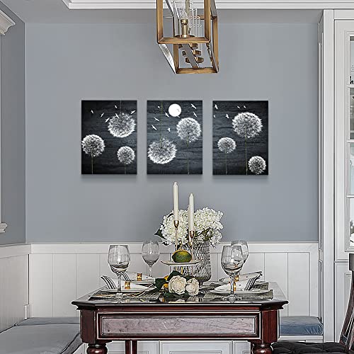 لوحة فنية جدارية من القماش لغرفة النوم وغرفة المعيشة، ديكور حائط المطبخ العائلي الحديث، صور جدار الحمام، عمل فني باللونين الاسود والابيض وزهور الهندباء التجريدية، ديكور المكتب، 3 قطع