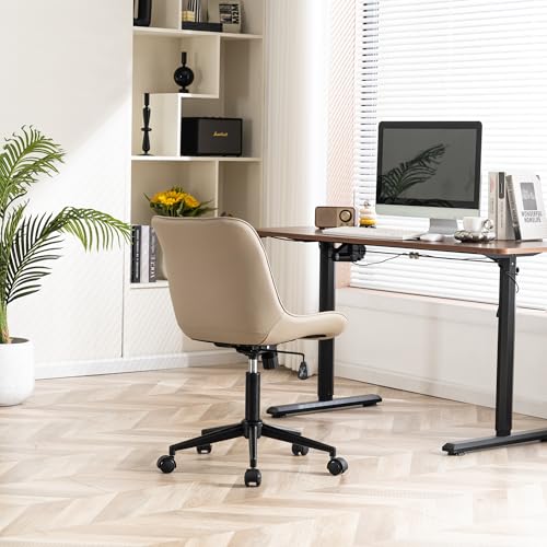 كرسي من يونايك للمكتب المنزلي وغرفة المذاكرة والجيمنج، قابل للتعديل مع دوران 360 درجة ووضعية تمايل، مصنوع من الجلد الصناعي، باللون الكاكي