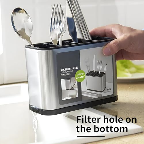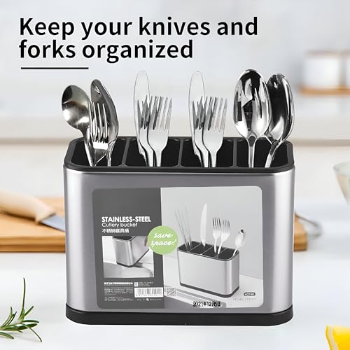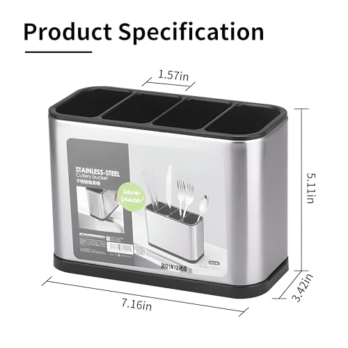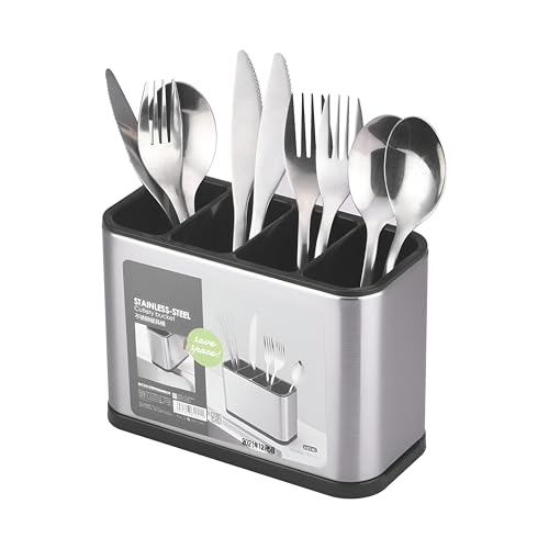 منظم أدوات المطبخ من الفولاذ المقاوم للصدأ مع 4 أقسام للمعالق والشوك والملعقة السباتولا (مقاس لارج L)