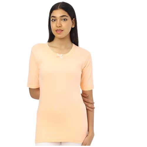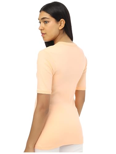 فانلة نصف كم حريمي أساسية برقبة دائرية من دهب قطعة واحدة