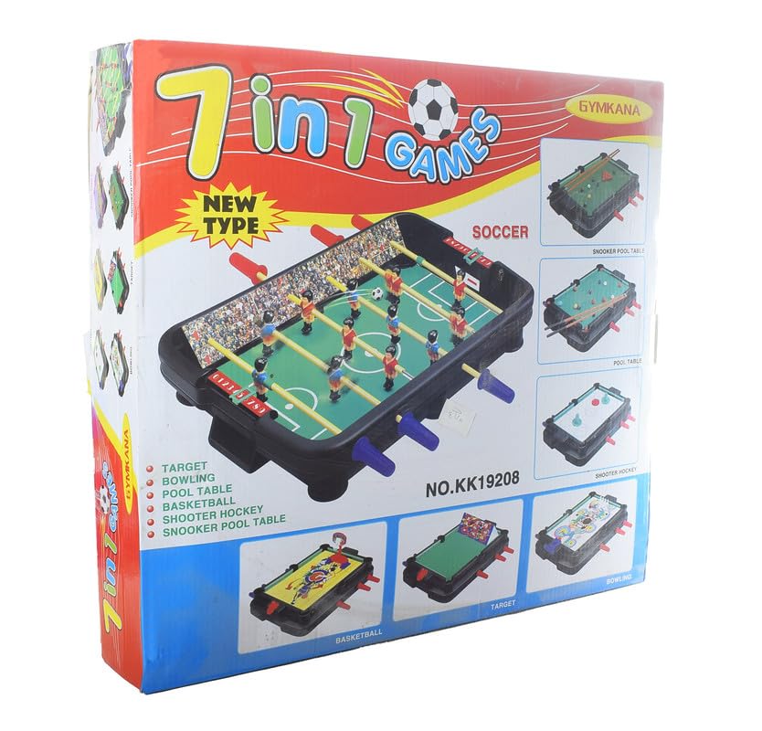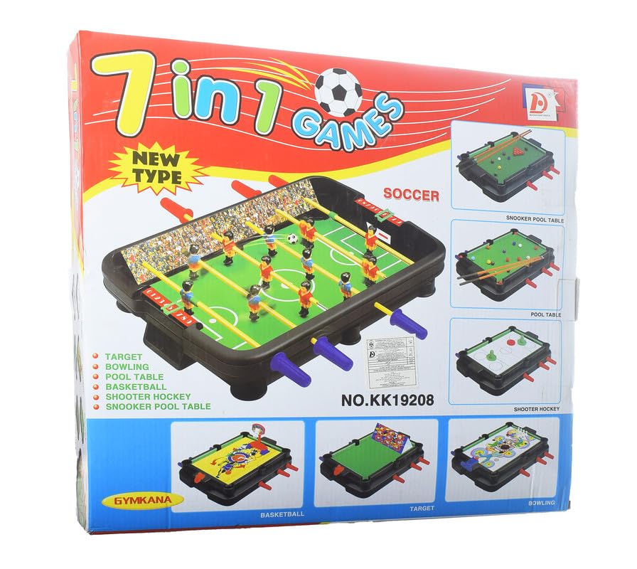 مجموعة طاولة ألعاب بلاستيكية متعددة 7 في 1 مع حمام سباحة وكرة قدم وكرة سلة وإكسسوارات - متعددة الألوان
