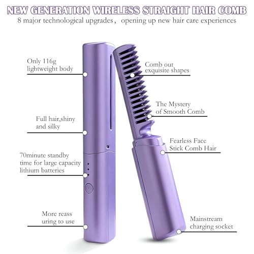 مكواة فرد الشعر الصغيرة اللاسلكية المحمولة للسفر، مكواة فرد الشعر اللاسلكية المريحة بدون مجهود أثناء السفر، مكواة شعر صغيرة محمولة تعمل بالشحن (2 خيار تشغيل)