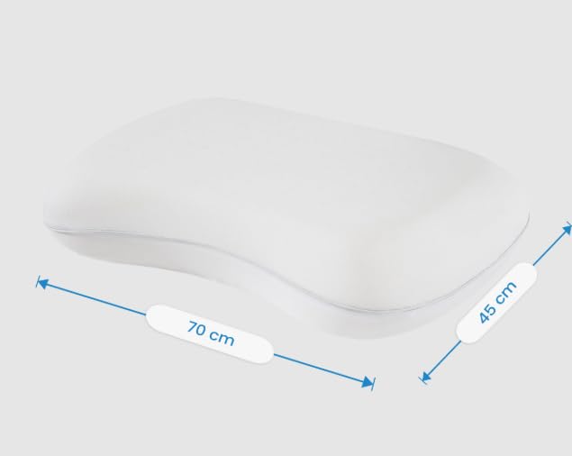 - مقاس كبير: يبلغ طولها 70 سم وعرضها 45 سم، مما يوفر مساحة سطح واسعة لدعم مريح للرأس والرقبة