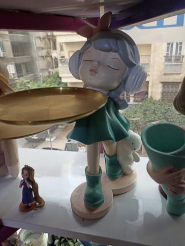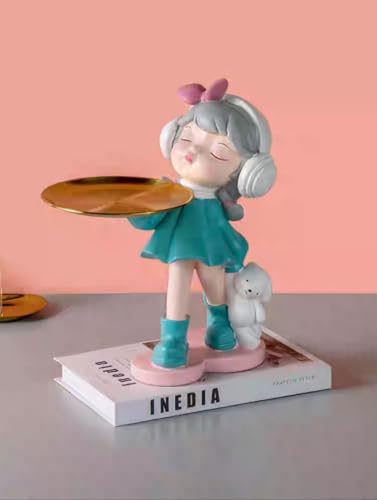 - تمثال بنت كيوت بستايل كرتوني، لابسة سماعات رأس وفيونكة وردية، بتحمل صينية ذهبية أنيقة – تصميم يخطف الأنظار ويجمع بين الجمال والوظيفة