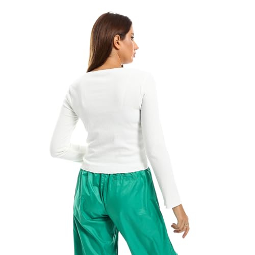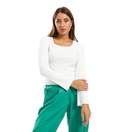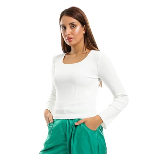 بلوزة قصيرة مضلعة 2607 بتصميم ملائم وأكمام طويلة ورقبة مربعة للنساء