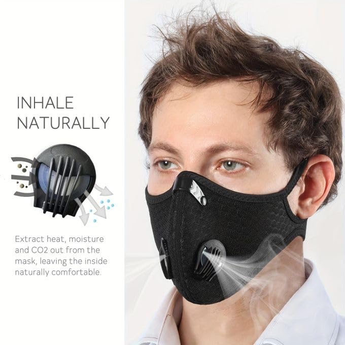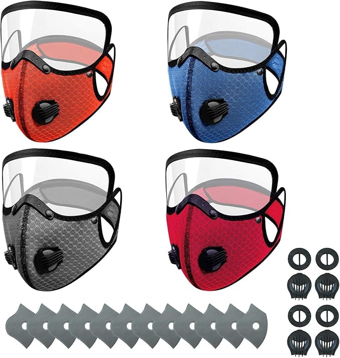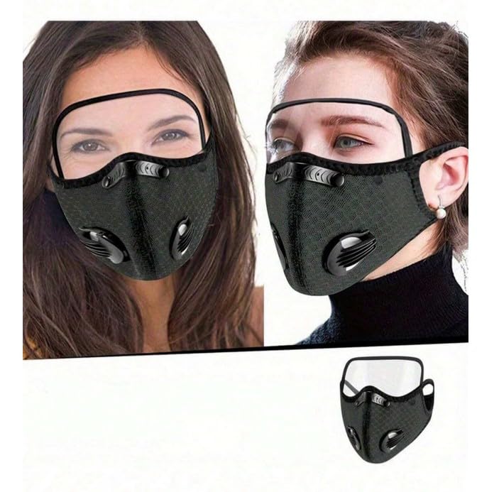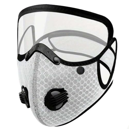 قناع الوجة مع صمامات تنفس ، مع فلتر كربون واسكرين شفاف حماية قابلة للفك، و صمامات لركوب الدراجات الرياضية ، أقنعة ركوب الدراجات مقاومة للرياح ومقاومة للغبار - لون ابيض - من كابر تريد، قماش
