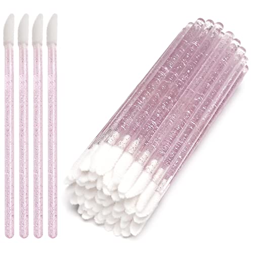 مجموعة فرش مكياج للاستعمال مرة واحدة، فرشاة أحمر شفاه وملمع، أداة وضع ماكياج، 50 قطعة، لون وردي