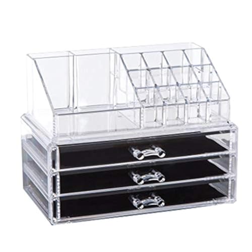 منظم مستحضرات تجميل من الاكريليك الشفاف - وحامل لعرض المكياج - وشنطة تخزين للمجوهرات بها 4 ادراج لاحمر الشفاه واقلام التحديد للفرش