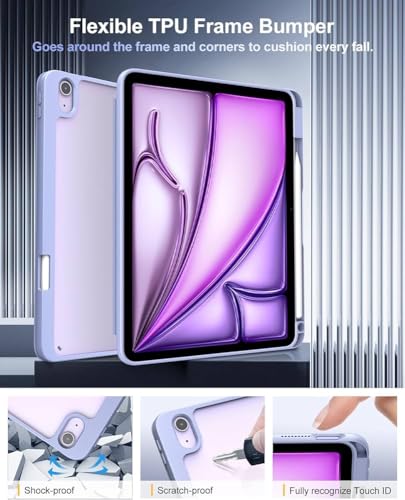 حافظة حماية متوافقة مع آيباد اير 11 إنش بتصميم غطاء مصنوعة من الجلد والبولي كربونات باللون الخزامي