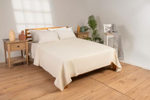 غطاء لحاف سادة بنقش بتصميم خلية النحل فائق النعومة ومصنوع من القطن 100% من امرييا لينينز، كريمي، مقاس مفرد (2.40 × 1.80 متر)