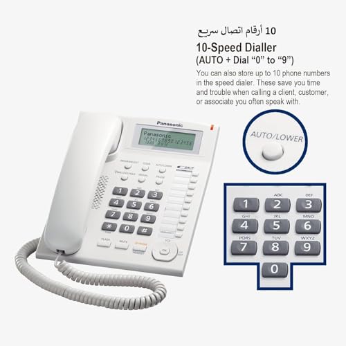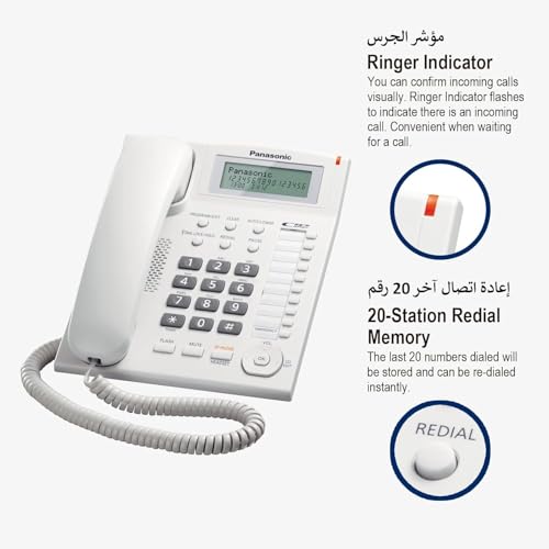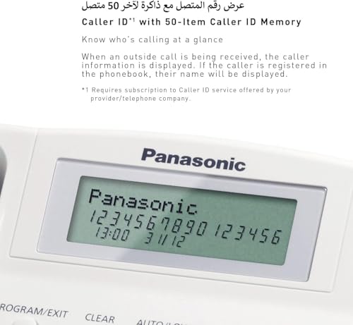 هاتف بميزة عرض رقم المتصل KX-TS880 من باناسونيك - هواتف (ليرفون، 50 إدخال، عرض رقم المتصل، لون أبيض)