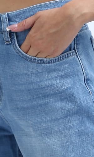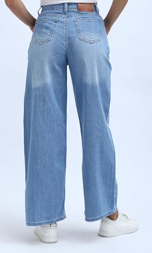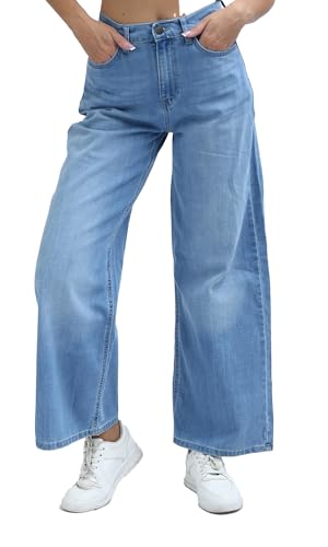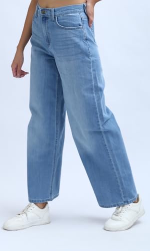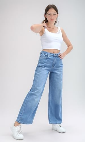 بنطلون جينز سادة واسع الساق بلون أزرق فاتح للنساء من ريفين