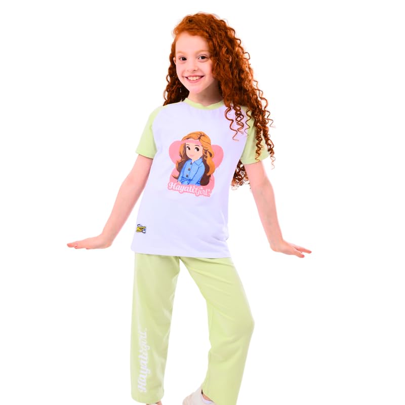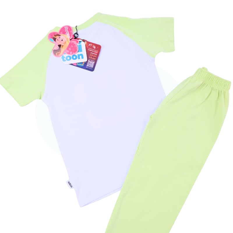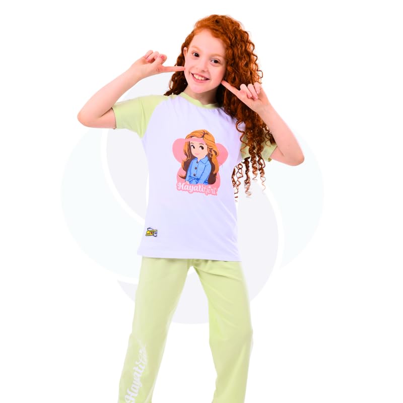 كوتون زون بيجامة رجلان للبنات من حياتي - قطن - تيشرت ابيض رجلان - بنطلون اخضر فاتح مقاس