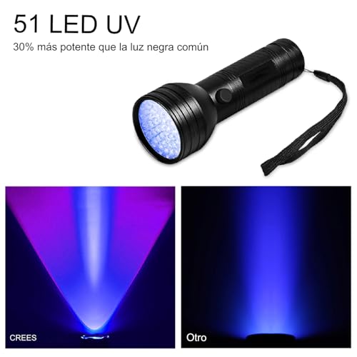 يو ثينك ضوء اسود، 51 مصباح LED بالاشعة فوق البنفسجية لفحص المنزل والفندق، ضوء اسود محمول للكشف عن بول الحيوانات الاليفة والبقع الجافة وحشرات الفراش، متوافق مع مزيل رائحة الحيوانات الاليفة