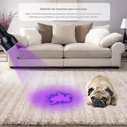 - 【 كاشف بول الحيوانات الأليفة】- يمكن لمصباح الإضاءة الخلفية أن يكشف عن بول وبقع الكلاب والقطط والحيوانات الأليفة الأخرى على السجاد والسجاد والأرضيات والأثاث والقماش وأكثر من ذلك بكثير والتي لا يمكن رؤيتها بالعين المجردة؛ يعمل عن طريق انبعاث ضوء الأشعة فوق البنفسجية الطويلة الموجة لتسبب