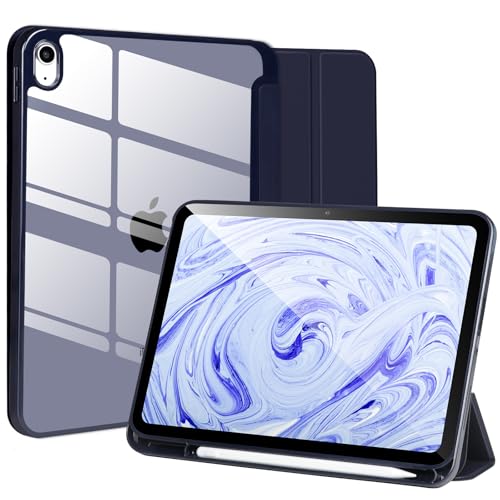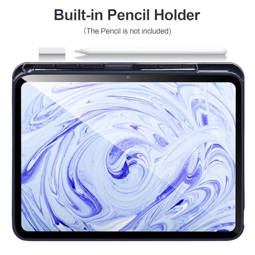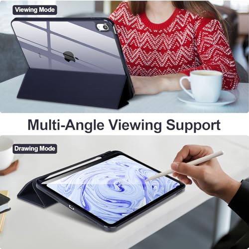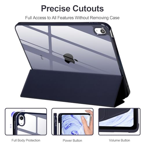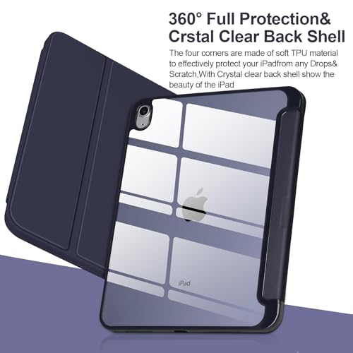 جراب حماية بتصميم رفيع ثلاثي الطي مع ظهر ناعم من البولي يوريثين المقاوم للحرارة وحامل لقلم آبل، مع خاصية اللإيقاف/التشغيل التلقائي، متوافق مع اي باد الجيل العاشر 10.9 بوصة 2022، أزرق داكن