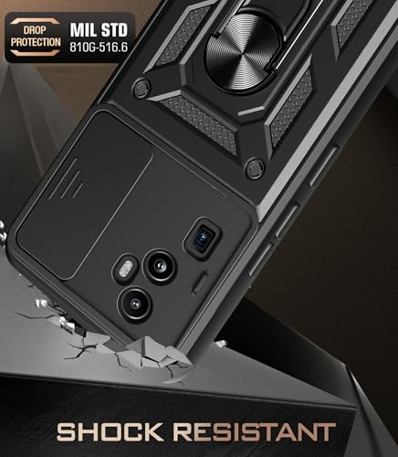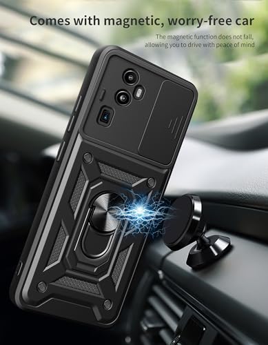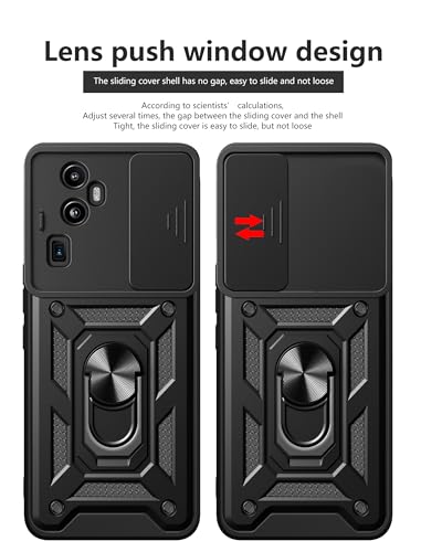 جراب حماية بغطاء منزلق للكاميرا مقاوم للصدمات من البولي يوريثين المقاوم للحرارة والبولي كربونات متوافق مع موبايل أوبو رينو 10 برو بلس (أسود)