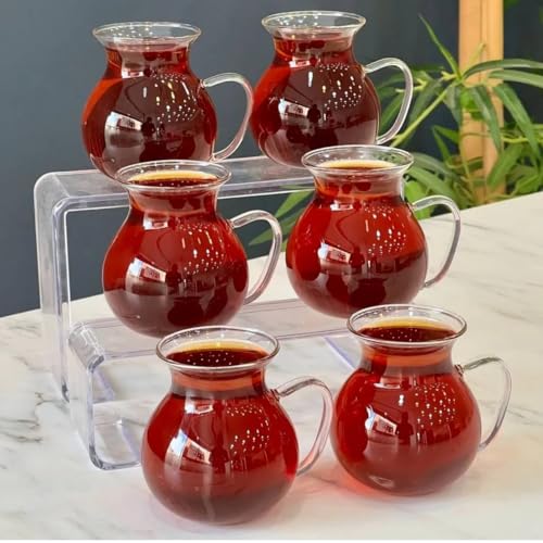 - طقم استكانة شاي يتضمن 6 قطع مصنوعة من زجاج عالي الجودة ويتحمل الحرارة حتى 150 درجة مئوية.