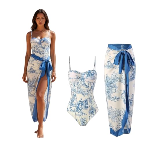 مايوه سباحة بيكيني للنساء بتصميم أوروبي أمريكي من شو داي، قطعة واحدة مع غطاء للشاطئ بنمط جيبة ملفوفة مزينة بالزهور لتغطية البطن، طقم ملابس قطعتين، البوليستر