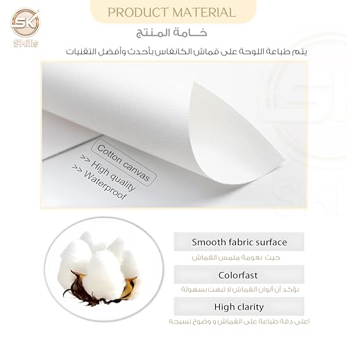 - يتم طباعة اللوحة على قماش الكانفاس بأحدث وأفضل التقنيات، . يتميز هذا الكانفاس بملمس فريد وإحساس رائع، مما يعزز من جاذبية اللوحة ويضفي عليها طابعاً فنياً استثنائياً.