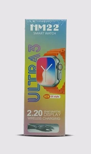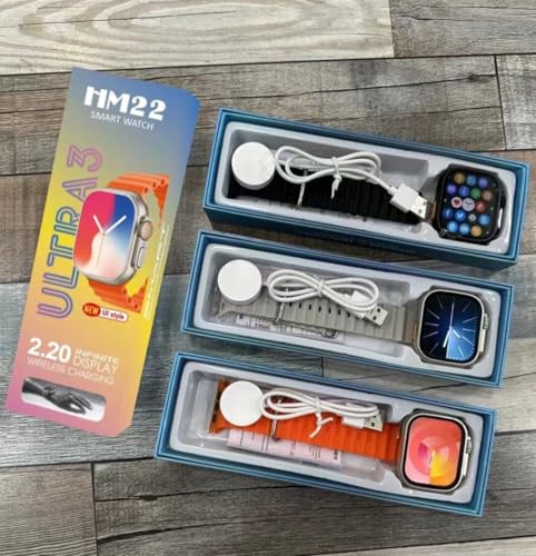 ساعة ذكية HM22 الترا 3، شاشة انفينيت 2.2 بوصة، مع شحن لاسلكي وسوار برتقالي