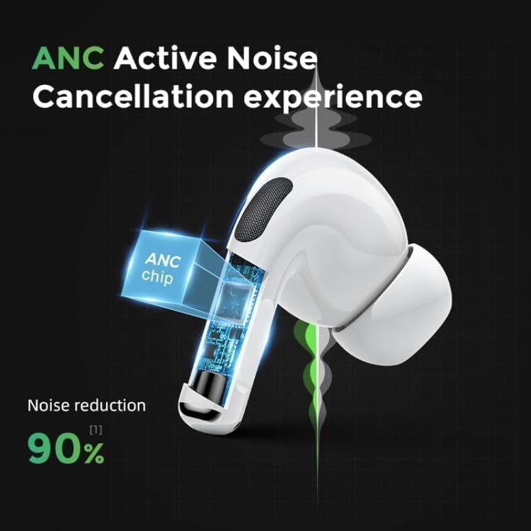 سماعة ايربودز برو 2 لاسلكية تعمل بالبلوتوث - سماعة أذن شبه أصلية مع علبة شحن لاسلكية، بخاصية إلغاء الضوضاء، متوافقة مع ايفون واندرويد وجميع الموبايلات، لون أبيض، داخل الأذن (برو 2)