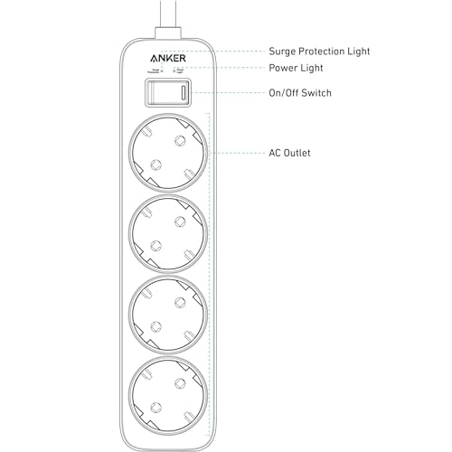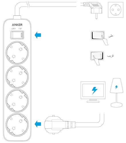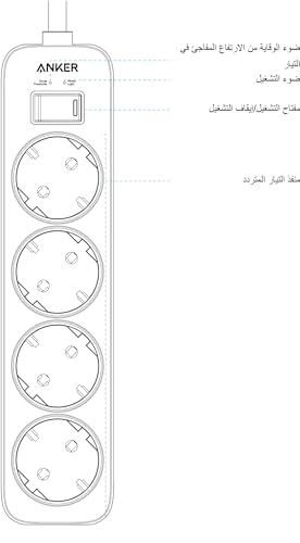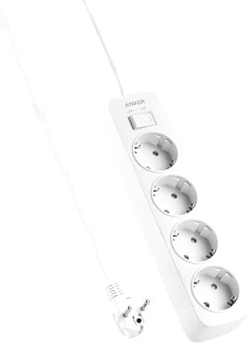 وصلة تمديد بـ 4 منافذ للحائط، سلك طاقة مع حماية من تدفق التيار للمنزل والمكتب والمزيد من انكر