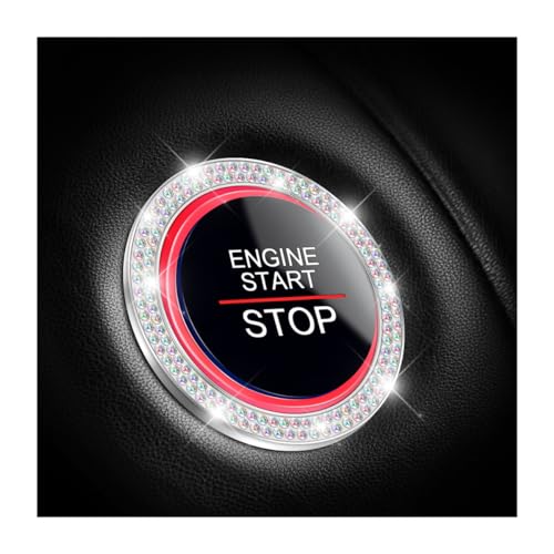 ملصقات لزر تشغيل محرك السيارة بتصميم لامع ومزينة بأحجار الراين الكريستالية لتزيين السيارة، ملصق لمفتاح بدء تشغيل المحرك التلقائي بتصميم حلقي لتزيين السيارة من اوسيلي، قطعتان AB