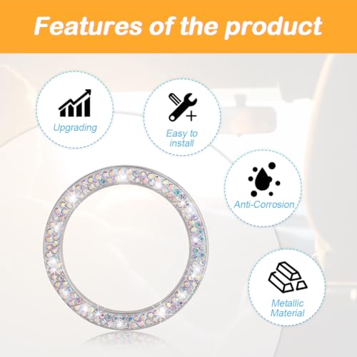 - 【مقاس مثالي】: القطر الخارجي للحلقة 1.54 انش، القطر الداخلي للحلقة 1.25 انش، السمك 0.16 انش. تبدو مبهرة مثل الأحجار الكريمة وجذابة للغاية. إذا قمت بتثبيته في سيارتك، فسيصبح منظرًا طبيعيًا في السيارة. مصنوعة من خليط معدني من الزنك المتين الذي سيدوم بالتأكيد بشكل رائع عامًا بعد عام.