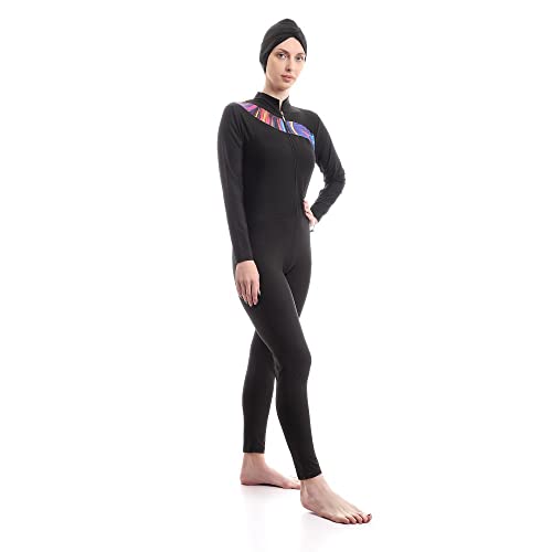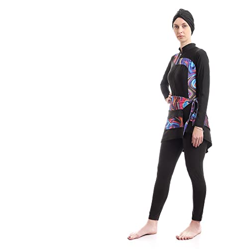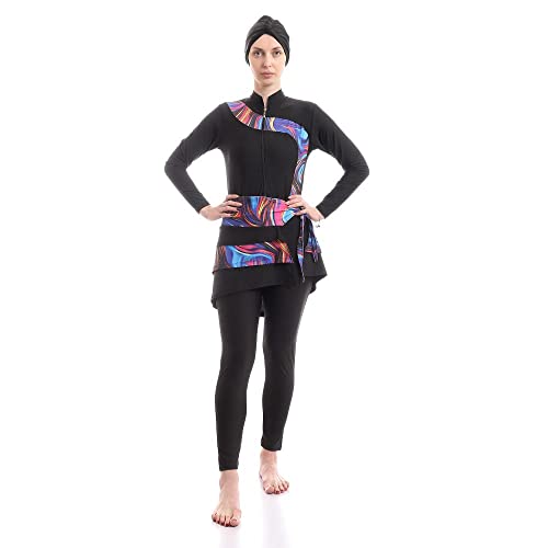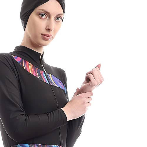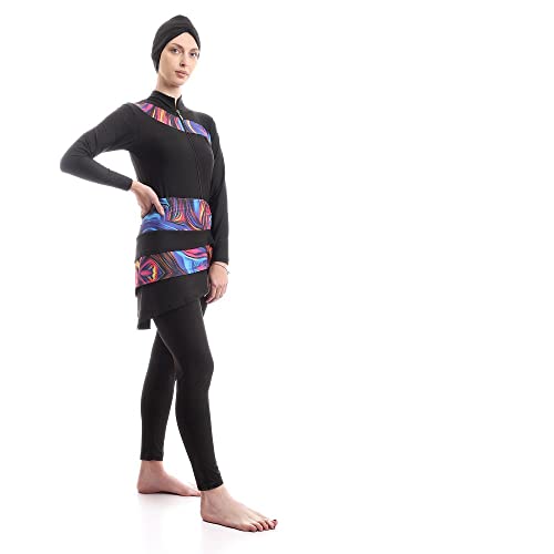 Full Black With Colorful Paitings Elegant Burkini For Swimming