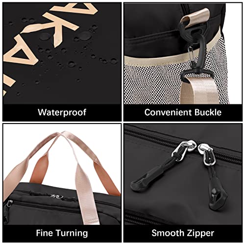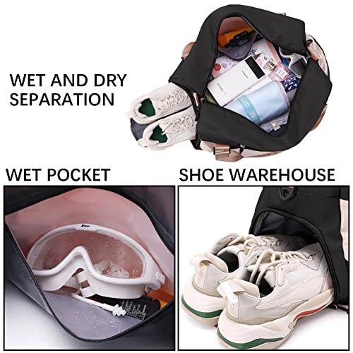 شنطة سفر مع جيب للأحذية من كيو كيه تي واي بي، دفل رياضية مقاومة للماء، تخزين كبيرة لصالة الألعاب الرياضية لعطلة نهاية الاسبوع للرجال والنساء، أسود 2، للأغراض الجافة والمبتلة، نايلون
