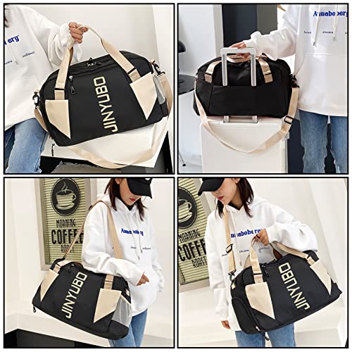 - 👜【متينة ومريحة】شنطة صالة الألعاب الرياضية النسائية هذه مصنوعة من قماش بوليستر عالي الجودة، وسوستة معدنية وقماش بوليستر وجاكار عالي الجودة مع أحزمة كتف قابلة للتعديل ومقابض مبطنة، شنطة السفر متينة ومقاومة للماء والخدش والتمزق.