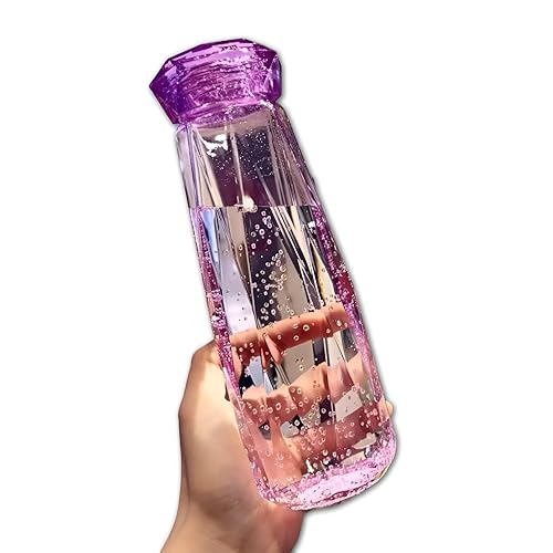 زجاجات عصير - زجاجات زجاجية أنيقة 650 مل لعصير الفاكهة الطازجة، زجاجات شرب قابلة لإعادة الاستخدام مع أغطية بلاستيكية محكمة الغلق، مقاومة للتسرب وصديقة للبيئة (أرجواني)