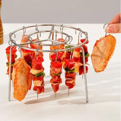 حامل أسياخ الشواء للمقلاة الهوائية، ٢٤ سيخ من الستانلس ستيل، مثالي للشيش طاووق
