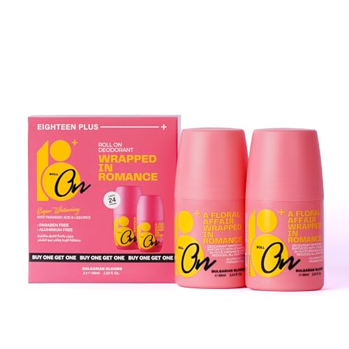 مزيل عرق رول أون من ايتين بلس برائحة الأزهار البلغارية للنساء، عبوتين سعة 120 مل، خالٍ من الألومنيوم مع حماية 24 ساعة