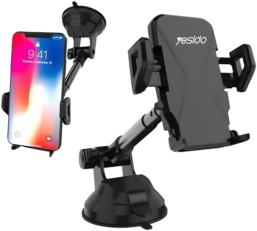 حامل جوال مرن وقابل للتمدد للسيارة من Next Store ، تثبيت قوي بالشفط على الزجاج أو التابلوه موديل C40 ، دوران 360 درجة، تركيب سهل بيد واحدة، ستاند موبايل متوافق مع جميع الهواتف