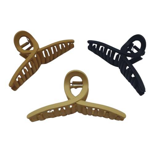 مشابك شعر من تشكيلة زوك للنساء والبنات، مشابك كبيرة غير قابلة للانزلاق للشعر الكثيف والرقيق، اكسسوارات شعر قوية التثبيت من ايسل، 3 قطع (زوك - أسود وبني كوفي وبيج)