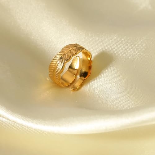 خاتم عصري فريد من نوعه بتصميم غير منتظم بلون ذهبي من الريش للنساء مناسب كهدية عصرية لحفلات الزفاف، معدن