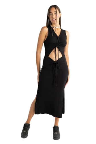 فستان من الفسكوز والبولي اميد مع خيط سحب للنساء من ايه اس تي كيه، لون اسود، مقاس L