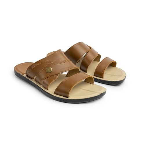 صندل T13 من الجلد سهل الارتداء بتصميم أشرطة متداخلة بلون أسود مع نعل داخلي مريح بلون بيج داكن للرجال من ناو شوز